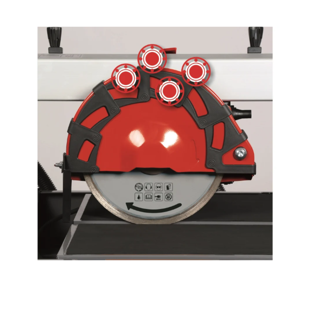 Благодаря продуманной конструкции и прочному рабочему столу, вы получаете стабильность, точность и комфорт при работе. Направляющая линейка и возможность резки под углом позволяют выполнять как прямолинейные, так и диагональные резы. Встроенная система водяного охлаждения эффективно снижает температуру диска, уменьшая износ и предотвращая появление пыли.