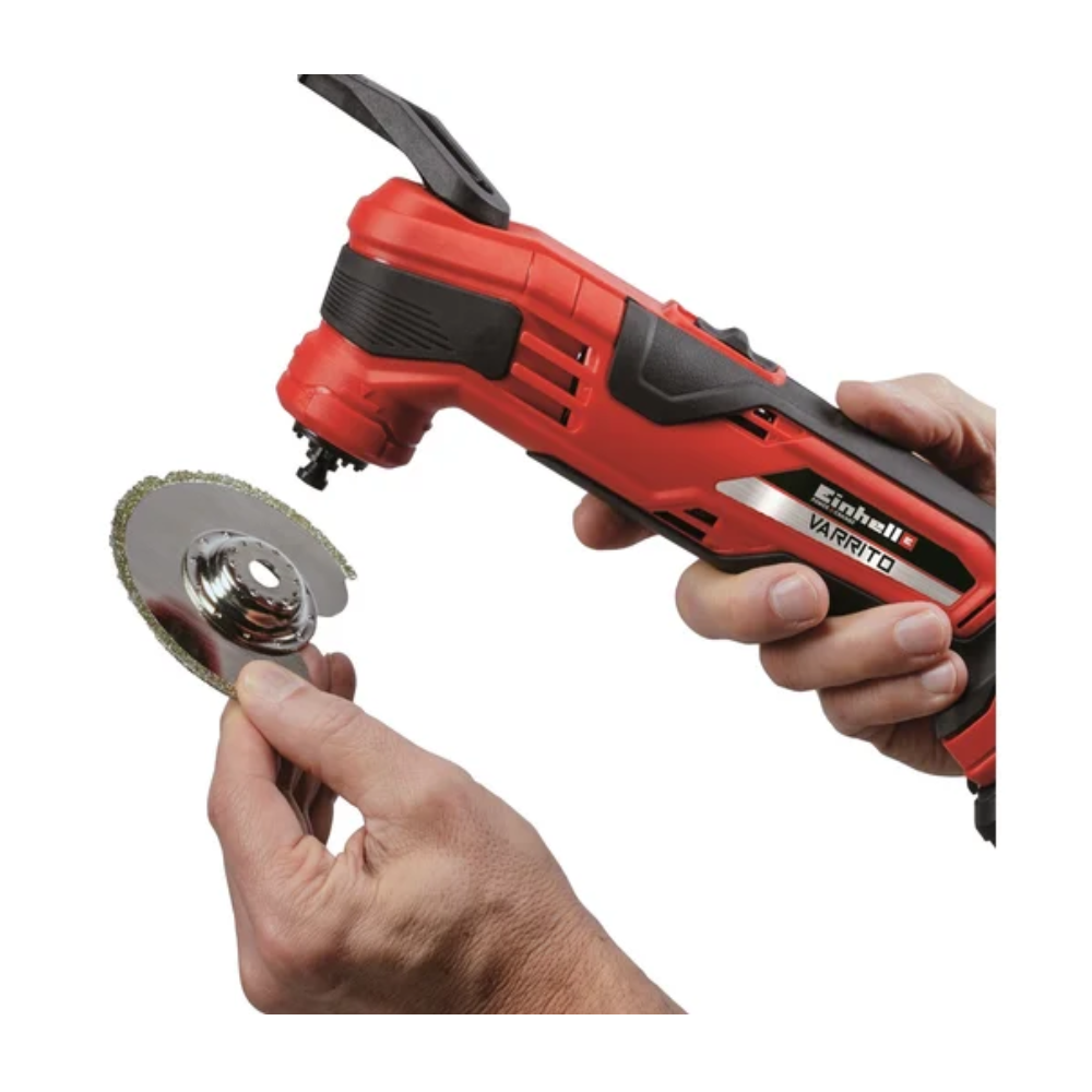 Einhell VARRITO – это универсальный аккумуляторный осцилляционный инструмент из линейки Power X-Change, созданный для тех, кто ценит функциональность, мобильность и надёжность. Он одинаково хорошо режет, шлифует, пилит и зачищает различные материалы: дерево, металл, пластик, плитку и многое другое.