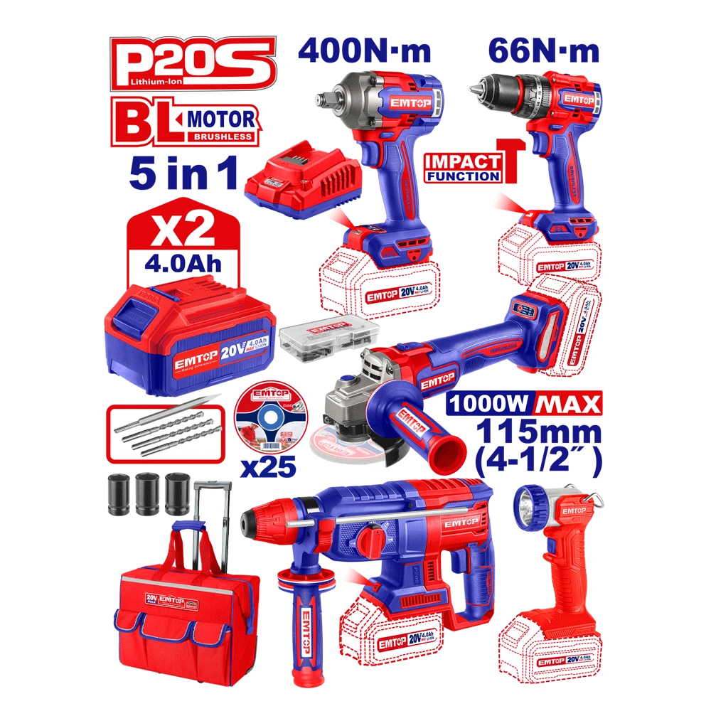 Набор аккумуляторных инструментов EMTOP ECKL2059