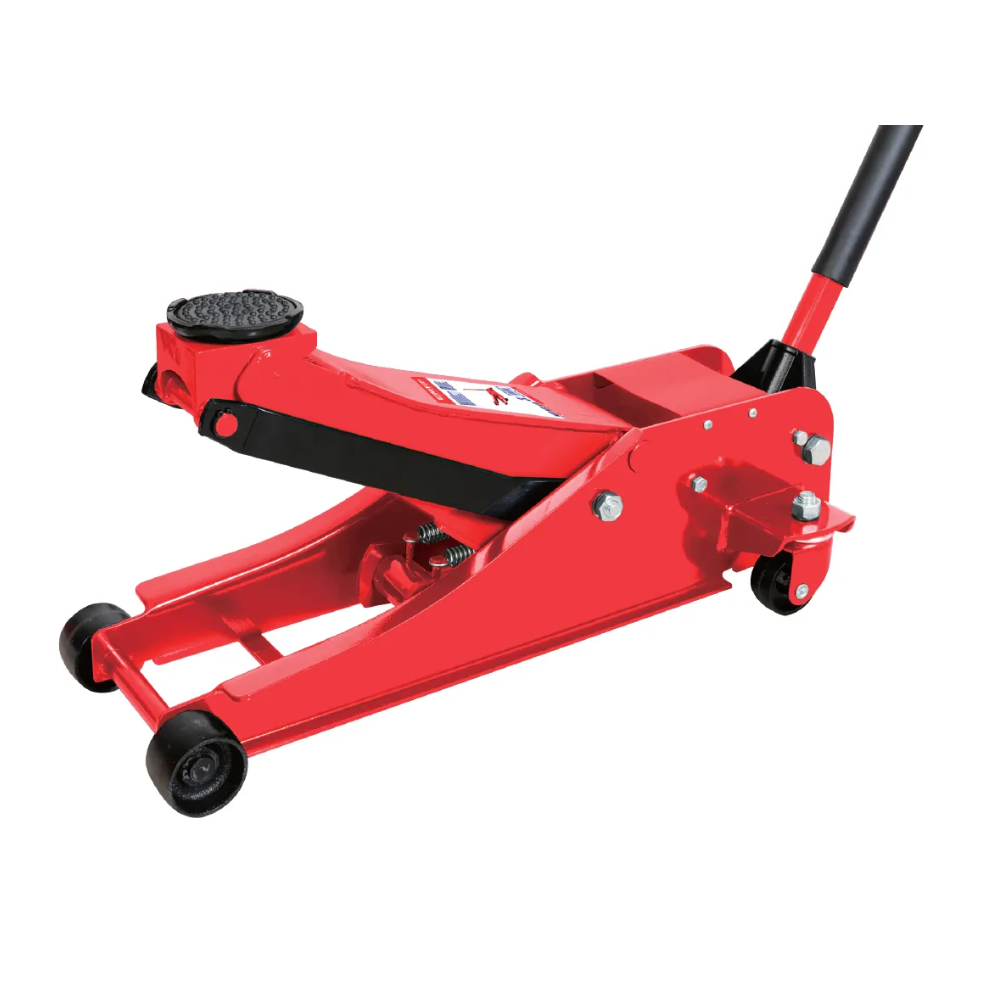 Домкрат работает по принципу гидравлического подъема, что позволяет поднимать груз плавно и без чрезмерных усилий. Компактные размеры и удобная рукоятка делают его простым в транспортировке и использовании в гараже, мастерской или в дороге.