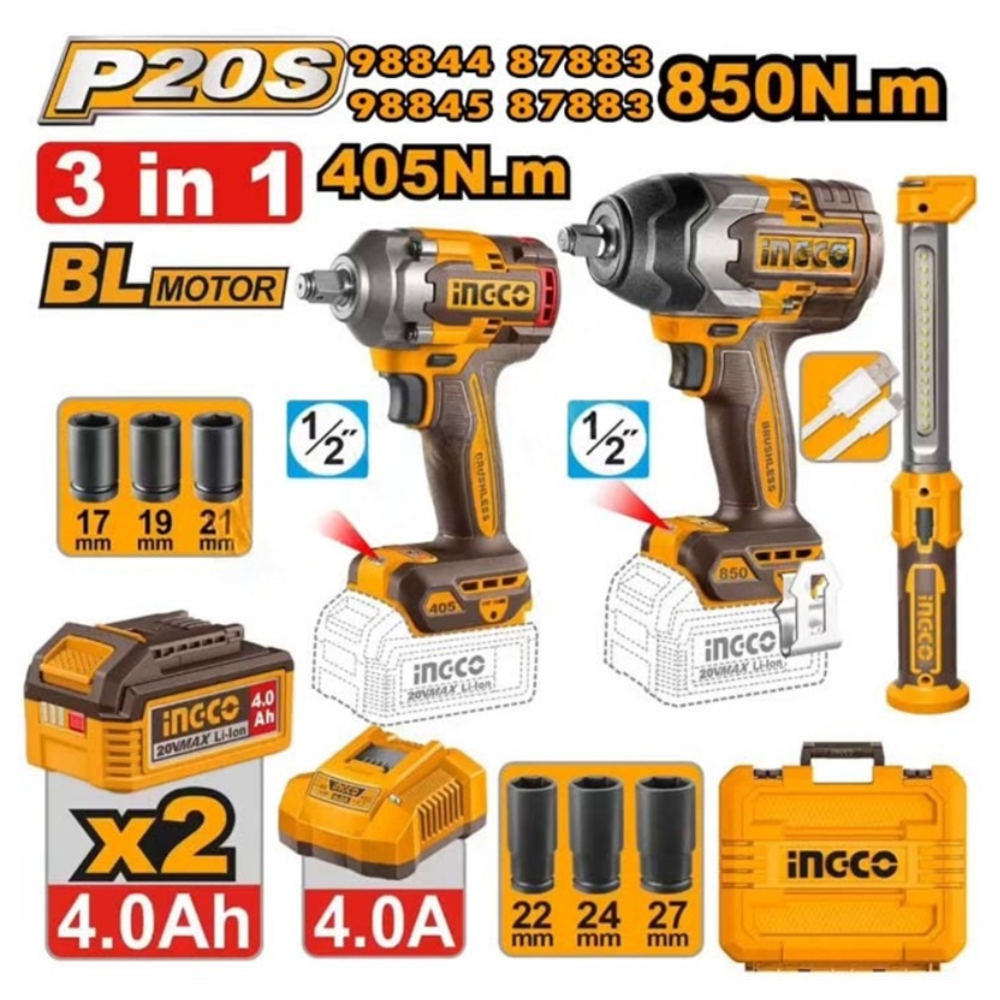 Этот профессиональный комбинированный набор инструментов INGCO на единой аккумуляторной платформе P20S представляет собой мощное решение для тяжелых работ в автосервисах, шиномонтажах и на строительных площадках. Благодаря использованию передовых бесщеточных двигателей (BLMotor), этот набор обеспечивает исключительную мощность и долговечность. Не путать с базовым набором COSLI251085; данный набор включает два сверхмощных ударных гайковерта.