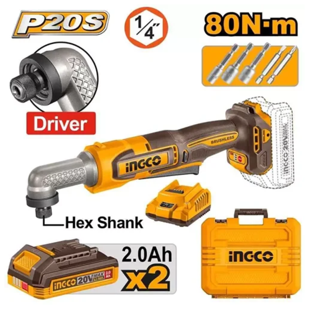 Аккумуляторный угловой шуруповерт INGCO CAIRLI208 (P20S)