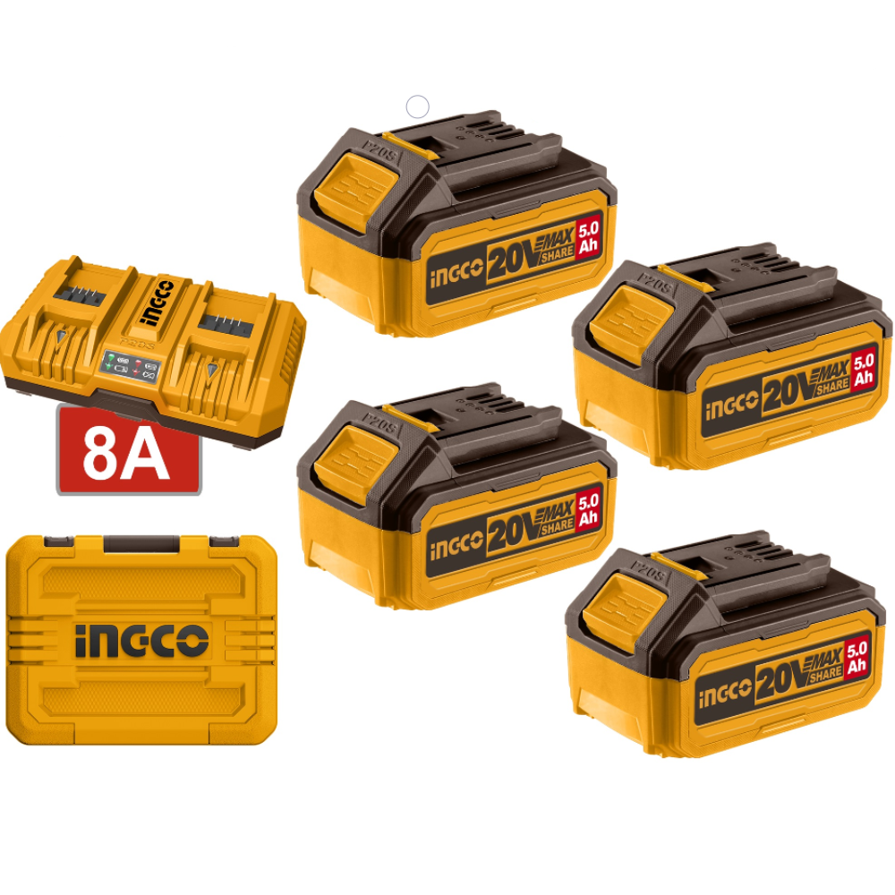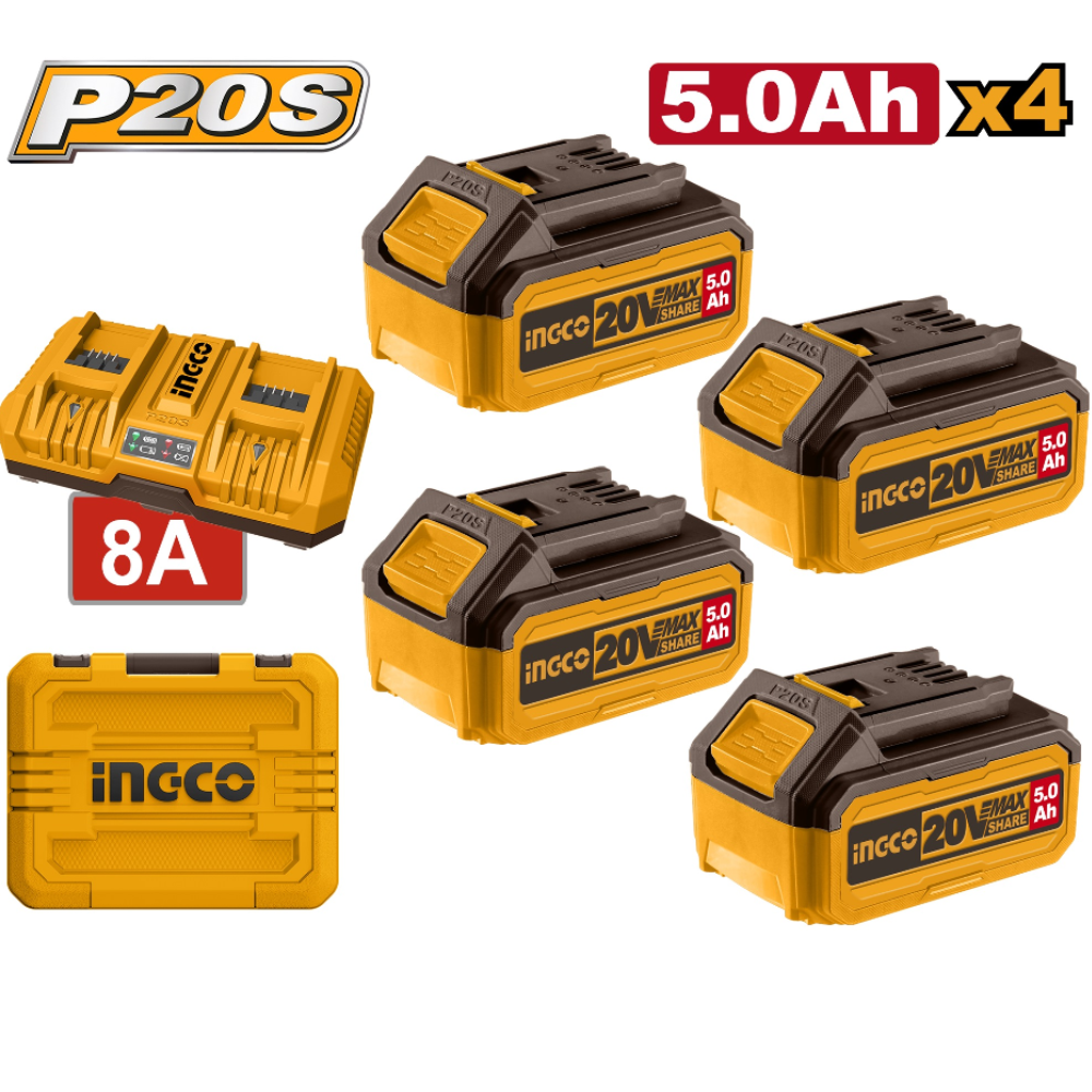 Профессиональный набор питания INGCO FBCLI20285 (P20S): 4 аккумулятора и двухпортовое ЗУ