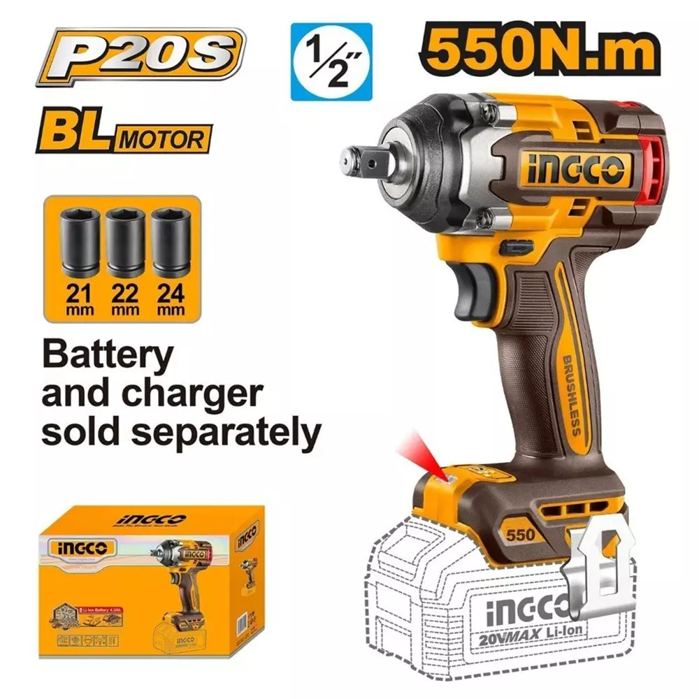 Аккумуляторный ударный гайковерт INGCO CIWLI20551 (20В) — Brushless