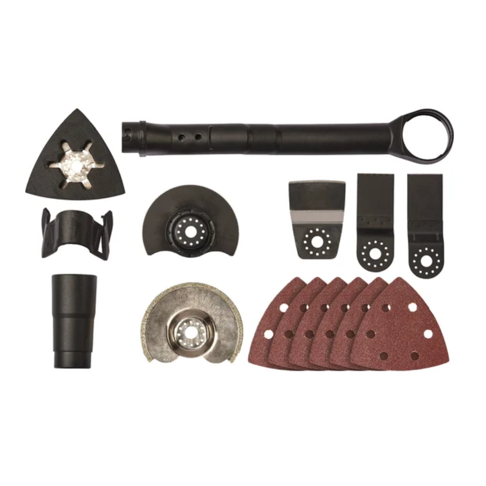 Имеет двигатель мощностью 300 Вт, электронную регулировку частоты колебаний для тонкой настройки инструмента под конкретный материал, электронный блок для поддержки частоты колебаний под нагрузкой и эргономичный корпус с мягкими накладками Softgrip.