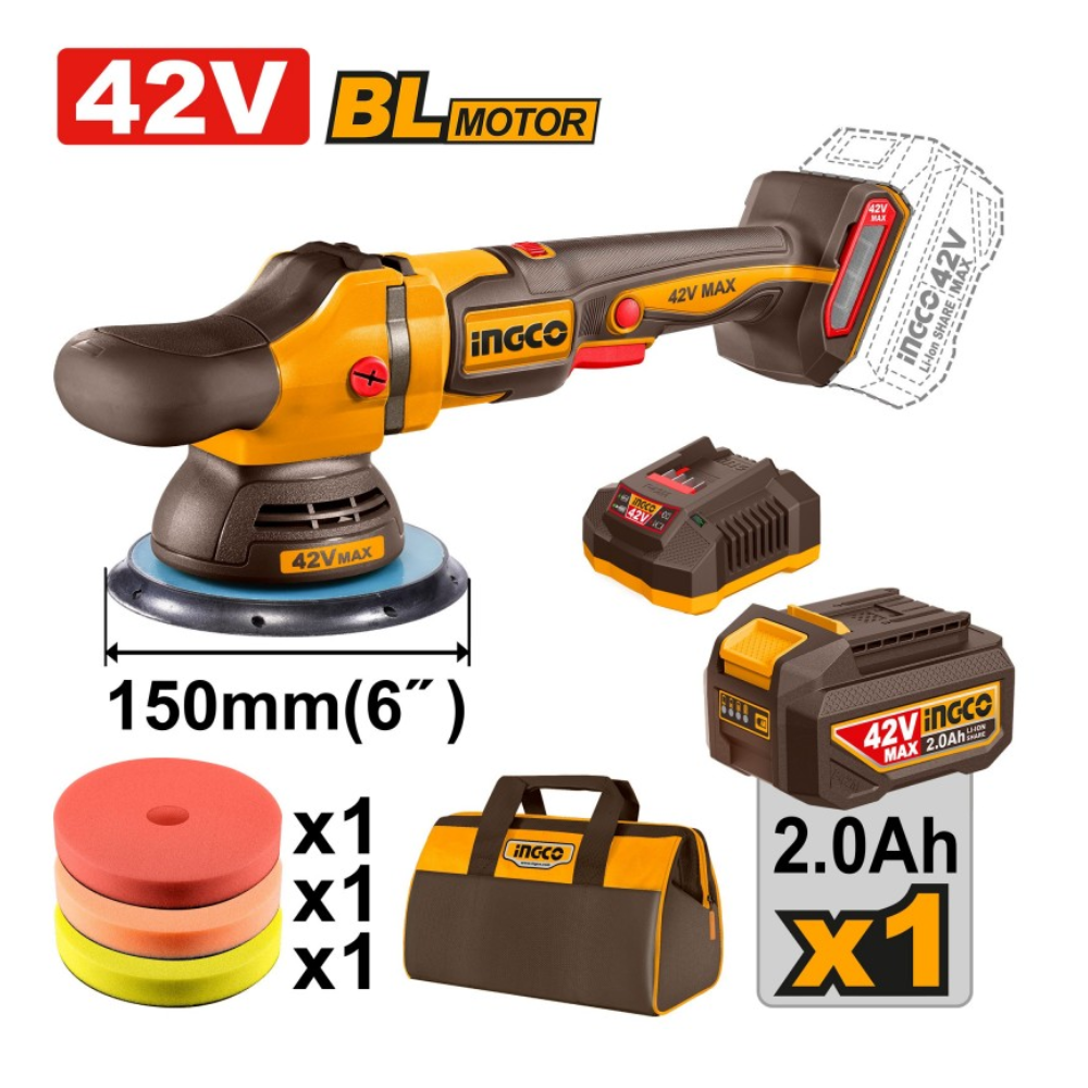 Аккумуляторная полировальная машина INGCO APLI42151 — современный и удобный инструмент, предназначенный для шлифовки и полировки различных поверхностей в бытовых и профессиональных условиях.