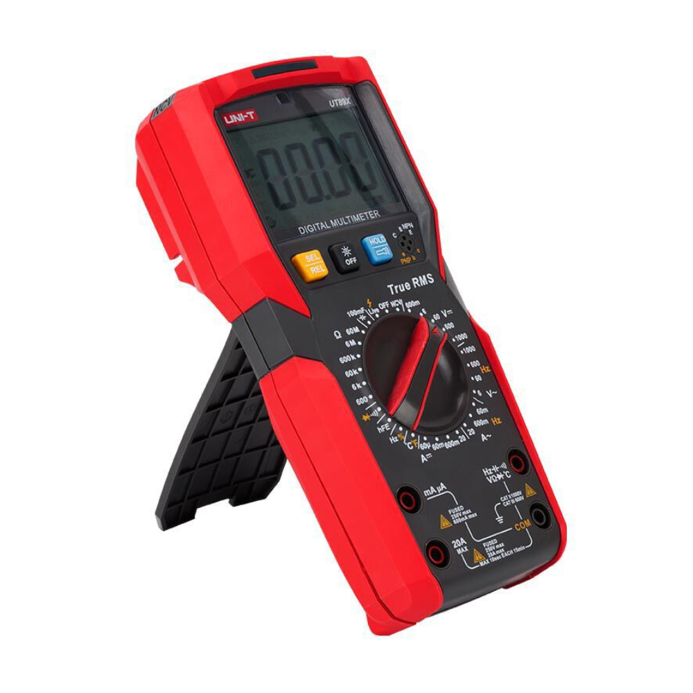 UNI-T UT89X имеет прочный корпус с защитным бампером, устойчив к механическим повреждениям и подходит для работы в сложных условиях. Встроенная защита от перегрузок повышает безопасность при измерениях. Эргономичный дизайн и удобное расположение кнопок делают использование прибора комфортным даже при длительной работе.