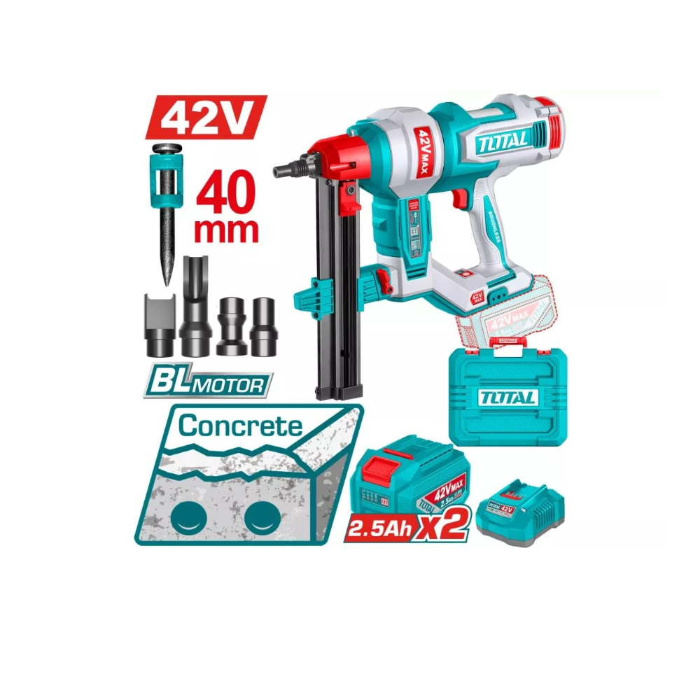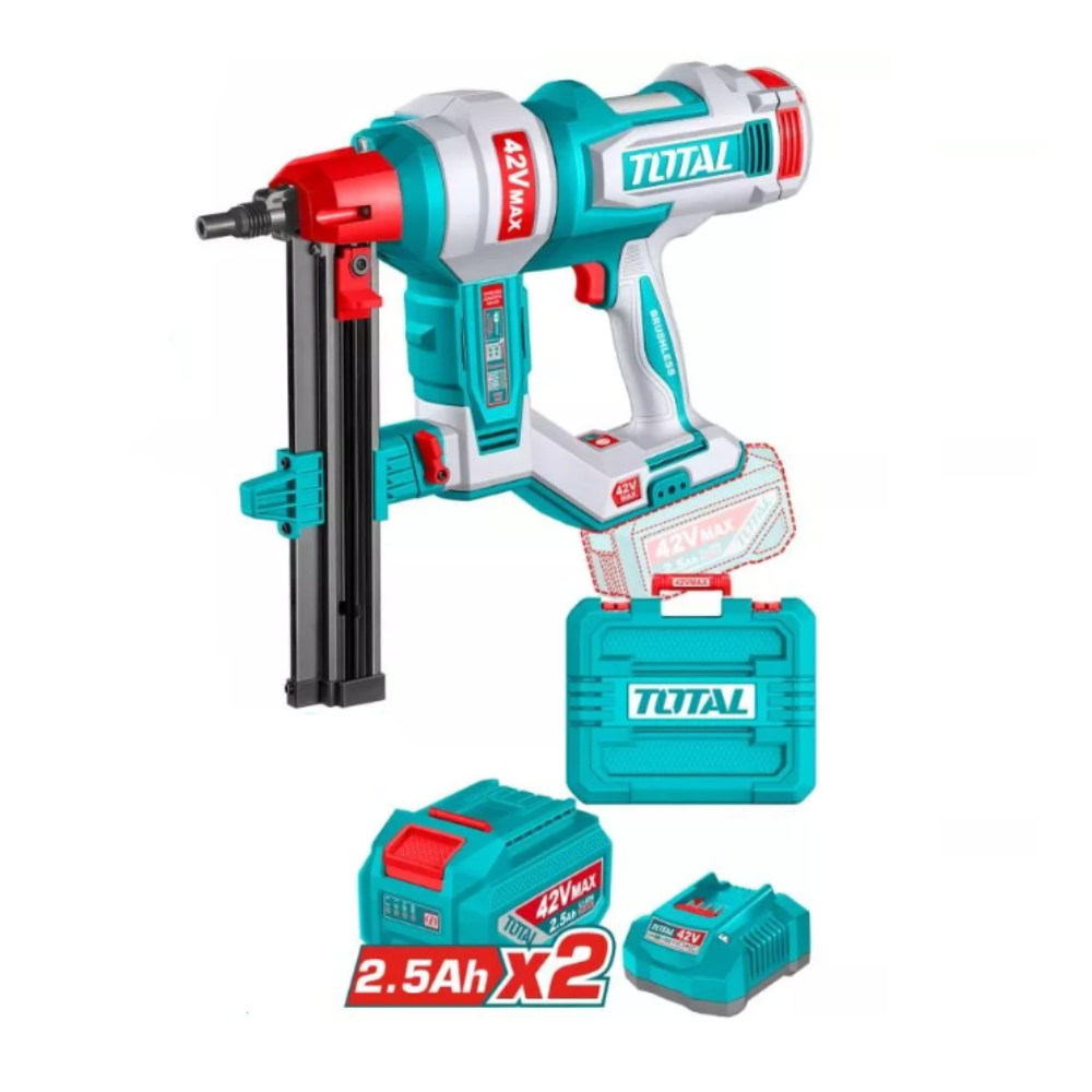 Аккумуляторный гвоздезабиватель TOTAL TCNLI420602 — это современный и удобный инструмент для быстрого и точного монтажа без использования компрессора и проводов. Идеально подходит для строительных, отделочных и монтажных работ как в профессиональной сфере, так и для домашнего использования.