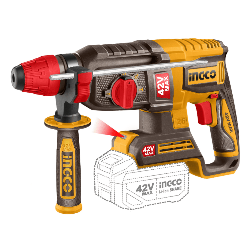 Аккумуляторный перфоратор INGCO CRHLI422682 — мощный и надёжный инструмент для профессиональных строительных и монтажных работ. Благодаря бесщеточному двигателю и системе питания 42В (2×20В) инструмент обеспечивает высокую производительность, стабильную работу под нагрузкой и увеличенный срок службы.