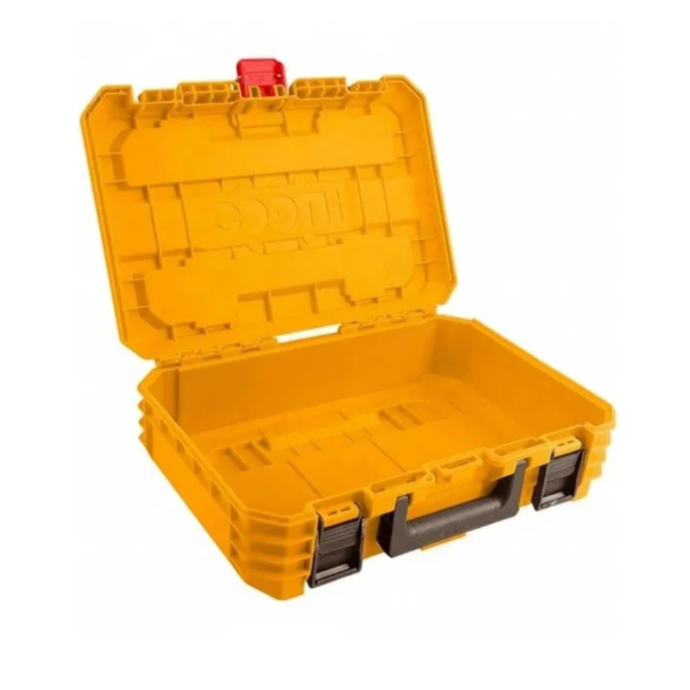 Корпус изготовлен из ударопрочного пластика, устойчивого к механическим повреждениям и износу, что обеспечивает долгий срок службы даже при интенсивной эксплуатации. Надежные защёлки плотно фиксируют крышку, защищая содержимое от пыли и влаги. Эргономичная ручка обеспечивает комфортную переноску и выдерживает значительную нагрузку.