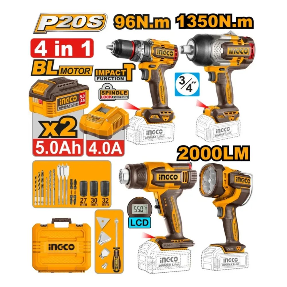 INGCO COSLI250608 — это высокопроизводительный комплект из двух незаменимых инструментов, оснащенных современными бесщеточными двигателями (Brushless). Набор входит в единую аккумуляторную систему P20S, что позволяет использовать батареи для более чем 150 различных инструментов бренда INGCO.